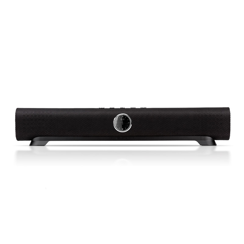 ‘BA-MK15’는 LED 모니터에 최적화된 가로 415mm 크기로 인테리어 소품으로써 제격이다. 특히 주목할 점은 세련된 블랙 페브릭 그릴 소재 정면에 부착된 클래식한 무소음 아날로그 시계다. 사운드바와 결합한 아날로그 시계는 본 적 없는 감각적인 매력을 보태 사용자 공간을 특별하게 꾸며준다. 제품 상단부 조작 버튼은 직관적이면서 가벼운 터치로 작동돼 편리하다.