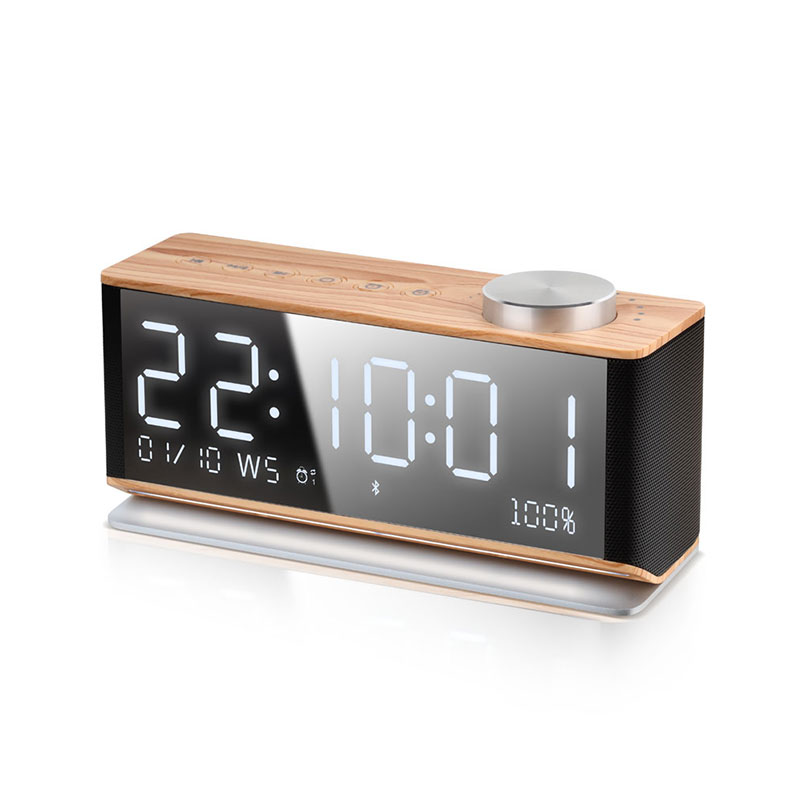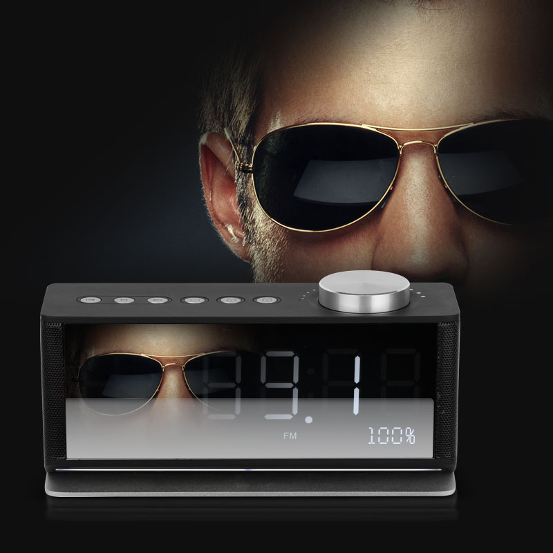디스플레이에는 시간을 확인할 수 있는 시계 및 알람 기능을 더했고, 제품 앞면은 미러 리플렉션 처리로 탁상용 거울의 편의도 챙겼다. 깔끔하고 모던한 디자인은 집과 오피스 등 어느 곳에 두어도 완벽히 어우러진다. 또한 제품 하단에 LED 조명을 가미, 공간을 은은히 밝혀 무드등 효과까지 겸한 다기능 블루투스 스피커다.