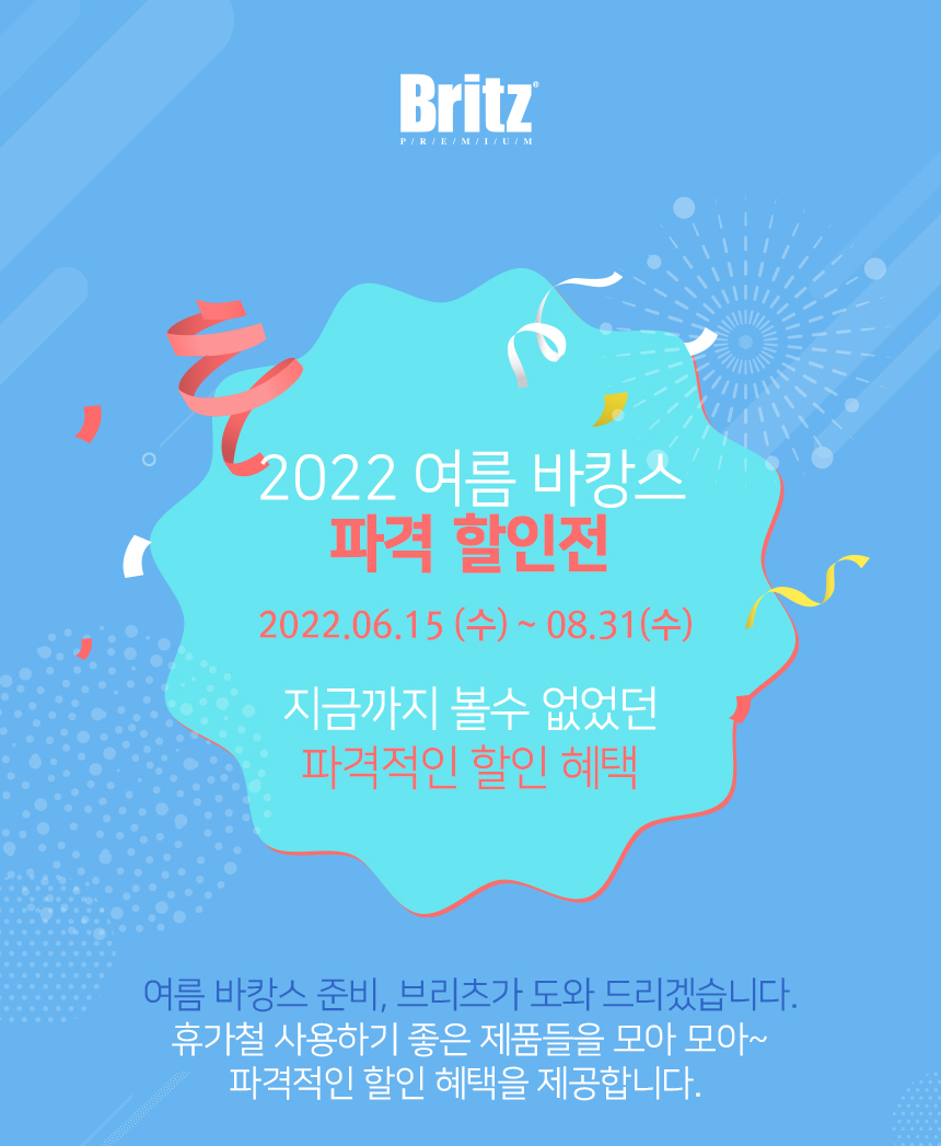 이번 브리츠 여름 바캉스 파격 할인전은 2022615~831일 까지 브리츠 공식 대리점의 네이버 스토어 브리츠팝에서 진행될 예정으로 지금까지 없었던 파격적인 가격으로 좋은 조건의 제품을 만나 볼 수 있는 기회가 될 것으로 보인다. 보다 자세한 내용은 브리츠 홈페이지 (http://www.britz.co.kr)에서 확인할 수 있다.