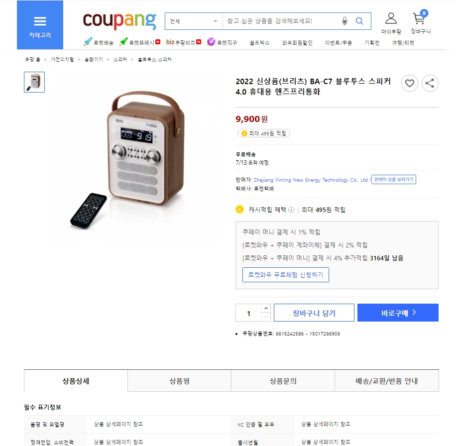 아래는 쿠팡 내에 등록된 피싱을 노린 브리츠 제품 입니다. 판매처는 Zhejiang Yiming New Energy Technology Co., Ltd 인데 연락이 안되는 유령업체 입니다.