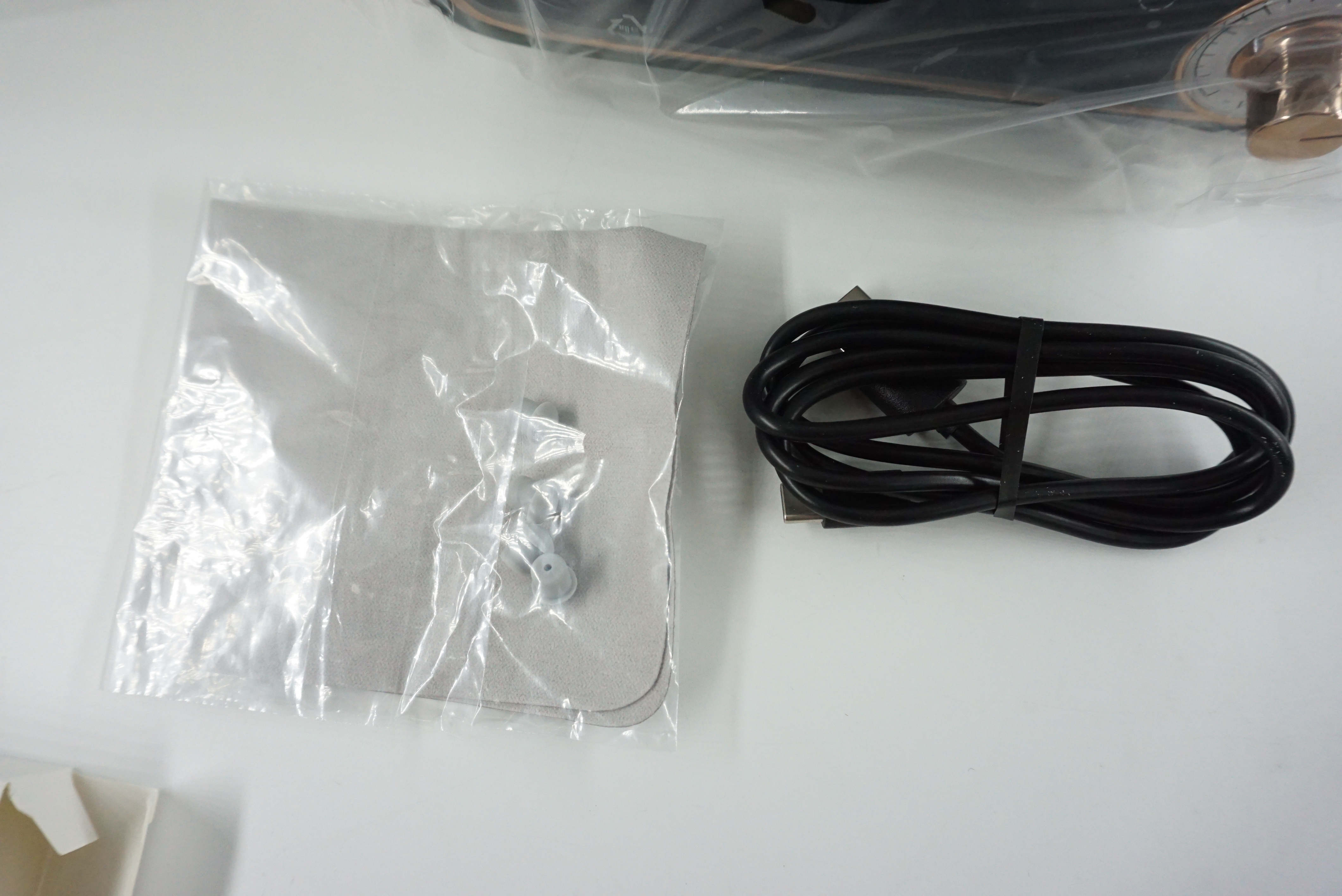 전원 케이블과 여분의 받침 고무, 그리고 융이 들어있습니다. 재질이 하이그로시라 때타기 쉽거든요.