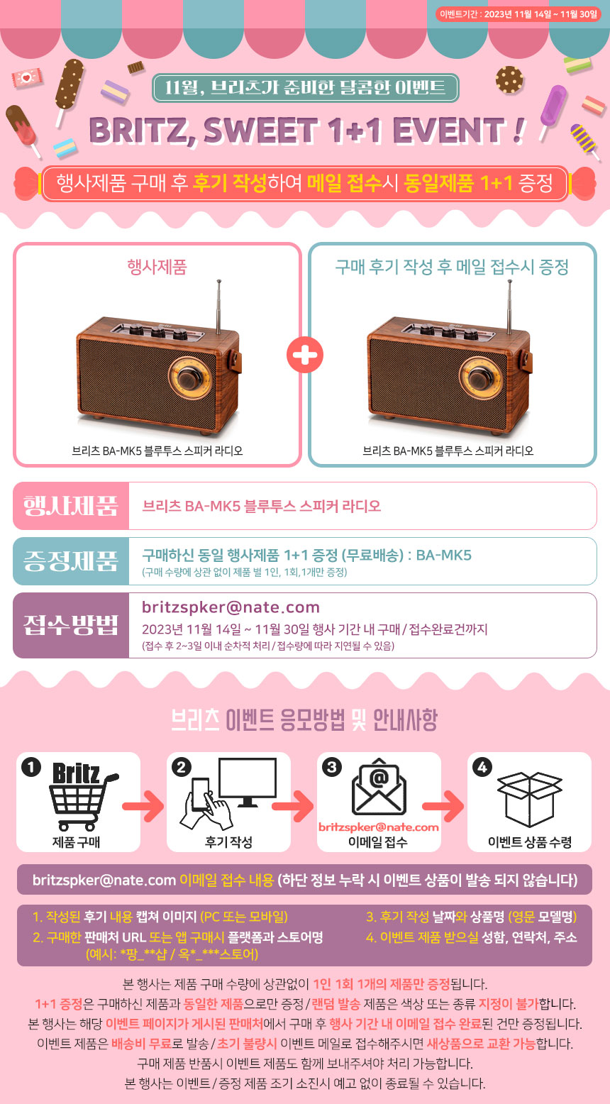 | 브리츠, SWEET 1+1 BA-MK5 파격 이벤트 (0) | 2023.11.14 |