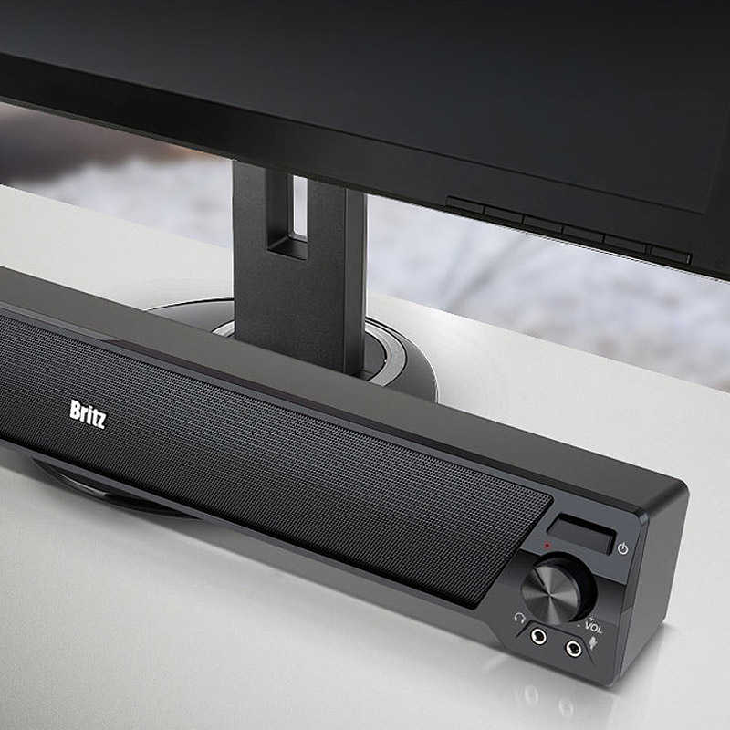 브리츠 ‘BA-MK38’은 데스크탑 PC와 노트북에 최적화된 사운드바 타입의 스피커다. 브리츠 사운드 엔지니어가 조율한 양쪽 직경 40mm 고급형 프리미엄 유닛이 내장돼 선명하고 사운드를 정격 4W의 크기로 출력한다. 중저음과 고음이 밸런스를 이룸으로써 한층 실감나고 깔끔한 음향을 느낄 수 있다.