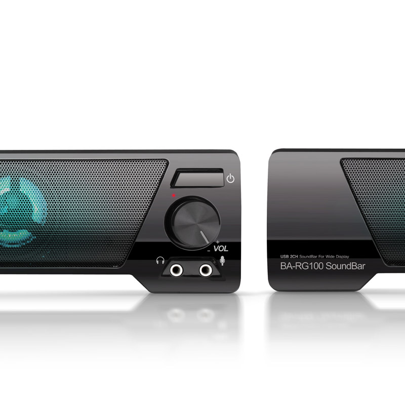 좀 더 화려한 개성을 더한 ‘BA-RG100’은 이전의 기본 모델(BA-R9)보다 가로로 90mm 길어진 490mm의 크기로, 27~32인치 대형 모니터와 게이밍에 특히 최적화된 LED 스피커다. 모니터 하단 설치 시 마치 한 제품인양 자연스럽게 어우러지도록 한다.