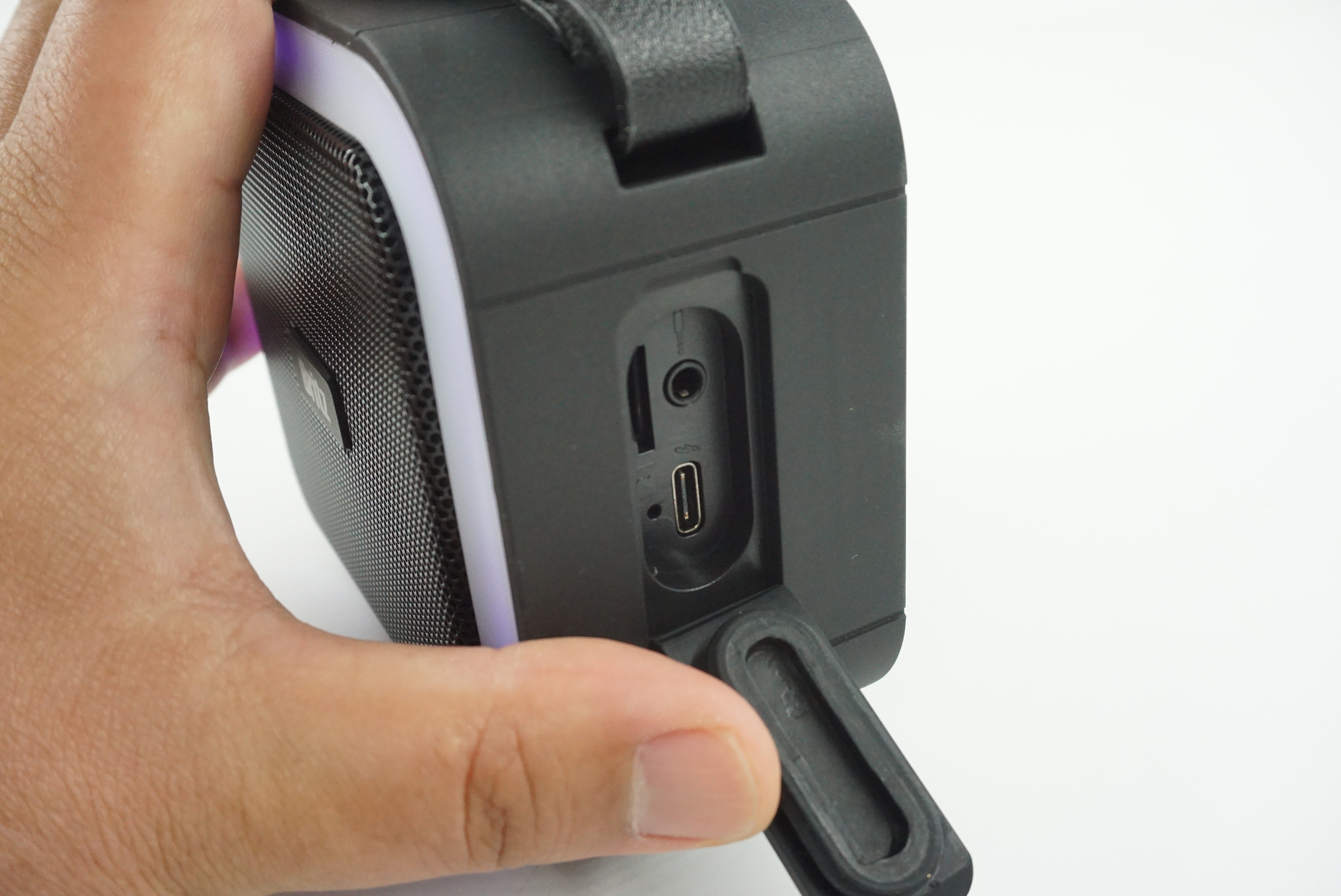 우측에 TF메모리 단자와 AUX 단자 그리고 C타입 충전 단자를 제공합니다.